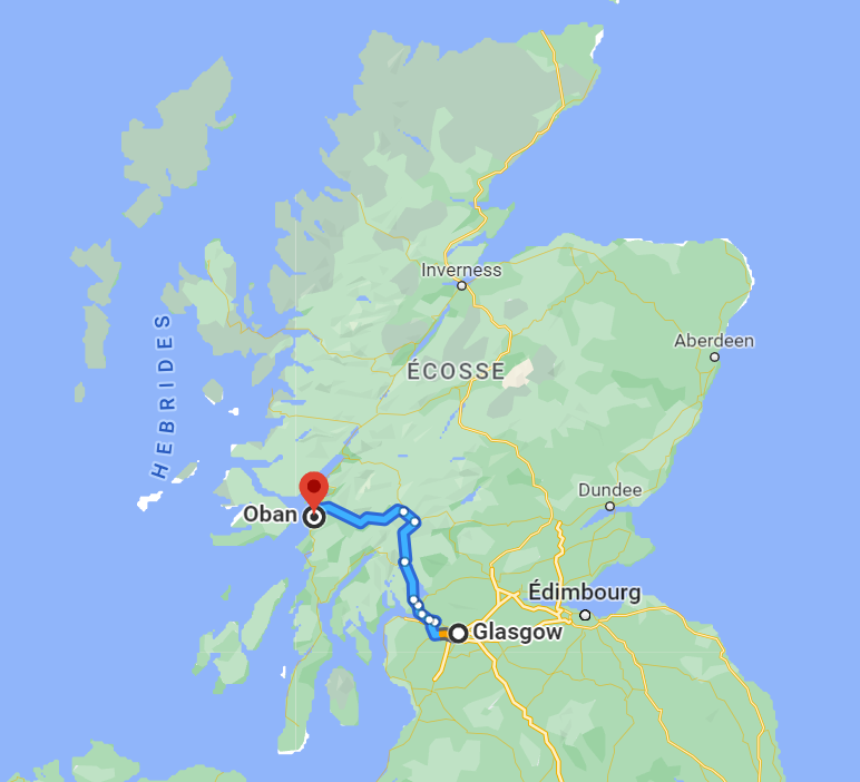 Depuis la métropole Française, le plus simple, c’est de partir en l’avion jusqu’à Glasgow ou Edinburgh, ensuite il faut prendre le train ou le bus jusqu’à Oban. Ce trajet en bus ou en train vous donnera déjà un bel aperçu des paysages écossais que nous allons croiser en voilier.
