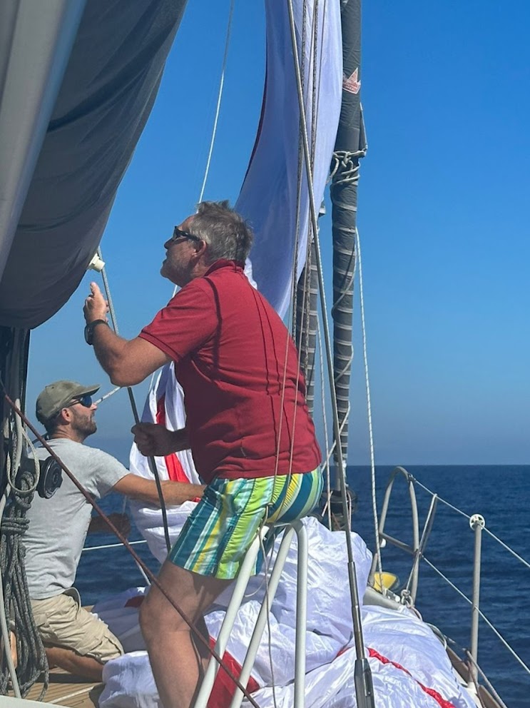 Arrivée de la dernière grande traversée, un mouillage est prévu le soir sur la côte d'Azur, pour un retour le lendemain matin